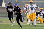 Cascade Christian running back Bryson Walker (2) breaks loose for a 44-yard touchdown on the first drive of the game against Gervais in their Class 3A state semifinal playoff game Saturday at Cottage Grove High School. The Challengers won 36-0.