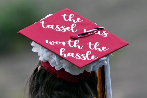 The mortarboard of co-valedictorian Lindsey Williams at the 2019 North Valley High School graduation ceremony Wednesday evening.