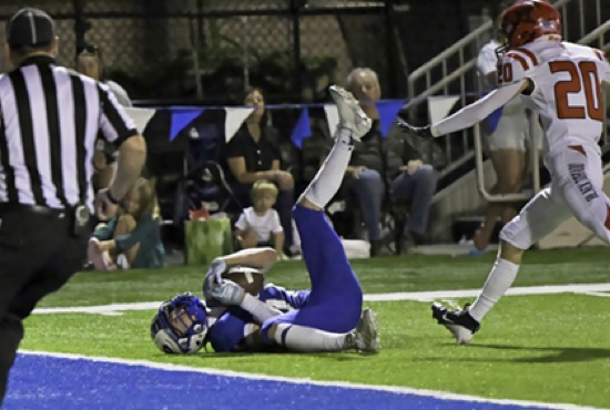 GP #11 falls to the turf after catching a huge pass that would set up GP's 3rd TD