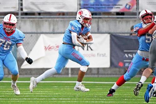 Ashland running back Oscar Hernandez (8) looks for room to run against Crook County in the first quarter at Walter A. Phillips Field in Ashland on Friday, Sept. 12.